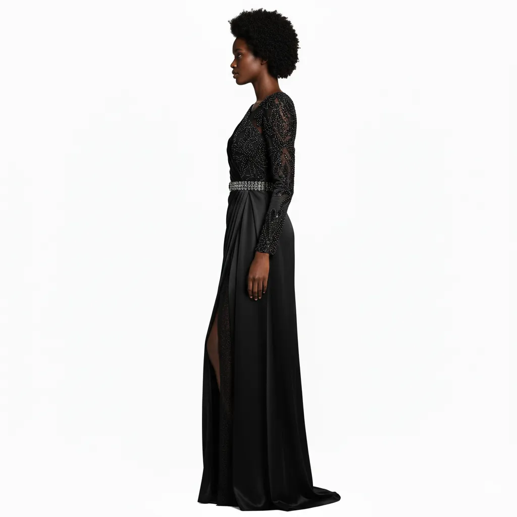 - Graceful Long Sleeves: The long sleeves, mirroring the sequined pattern of the bodice, offer elegant coverage and extend the shimmering effect, providing warmth and style.